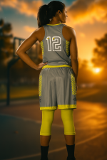Dominate the court in style with the Washington Swarm Women’s Basketball Uniform – a high-performance set designed for agility, breathability, and bold team spirit. This uniform features a modern grey and yellow color combo with striking honeycomb side panels and a clean-cut fit tailored for active athletes.